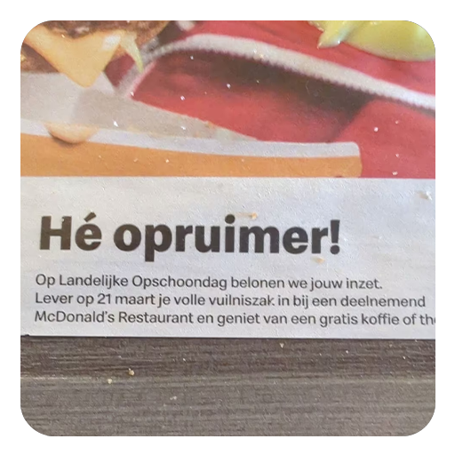Op 21 maart is het de landelijke opschoondag. McDonald's geeft die dag voor elke volle vuilniszak ee...