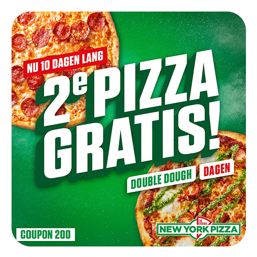 Tweede New York pizza gratis bij bezorgen en afhalen.