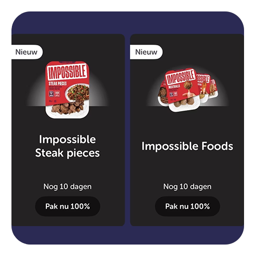 Bij jumbo&tikkie: 2x gratis: Impossible meat - Steak & grill burger of meatballs of kip tenders of b...